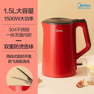 美的电热水壶家用烧水壶1.5升热水壶304不锈钢内胆双层防烫壶体