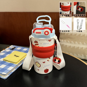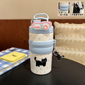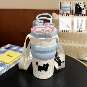 水杯保温杯女生2025新款便携不锈钢茶水分离双饮学生可爱吸管杯子