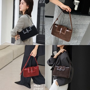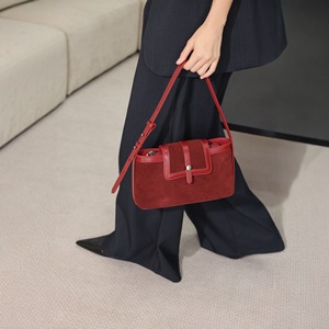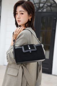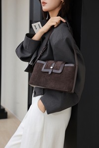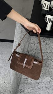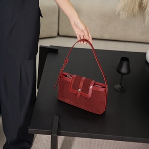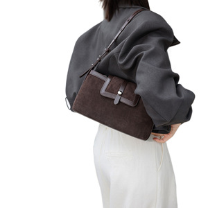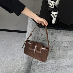 韩版小众复古法棍包磨砂牛皮简约百搭拼接手提包通勤腋下真皮包女