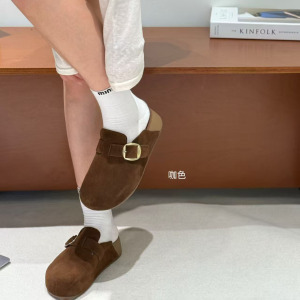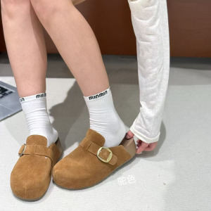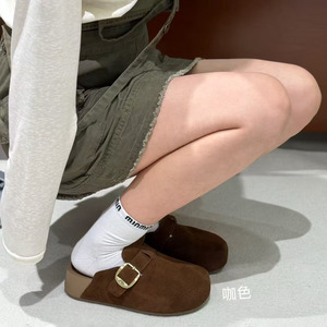 复古森系包头半拖鞋女外穿懒人一脚蹬磨砂真皮穆勒鞋丑萌勃肯鞋子