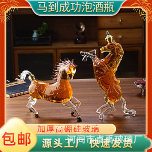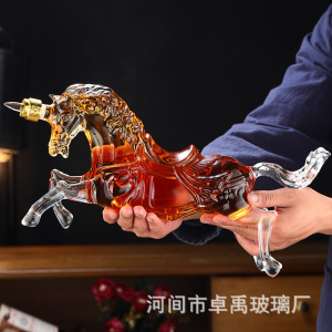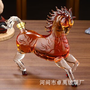 新款生肖马玻璃泡酒瓶 十二生肖高硼硅动物工艺酒瓶 马玻璃醒酒器