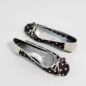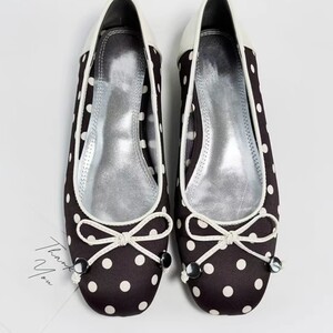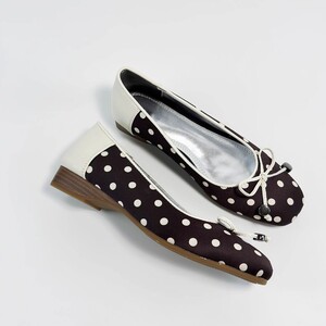 羊皮版法式拼色波点芭蕾平底鞋女2025春秋新款蝴蝶结坡跟方头单鞋