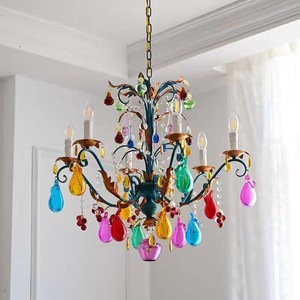 新款法式复古客厅创意艺术水果吊灯七彩玻璃浪漫卧室餐厅蜡烛吊灯