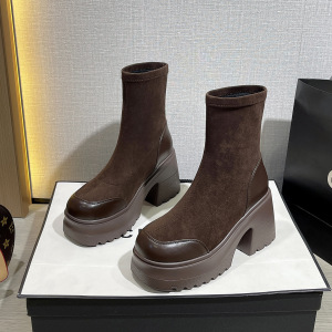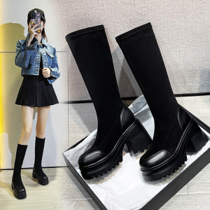 跟10cm不掉筒弹力靴女2025秋季新款厚底袜靴长筒靴百搭显高瘦瘦靴