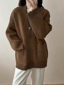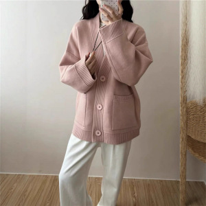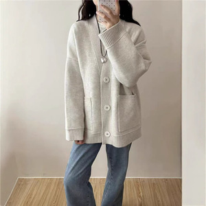 中长款毛衣开衫女宽松外穿2025秋季新款v领慵懒风针织衫外套上衣
