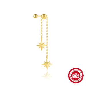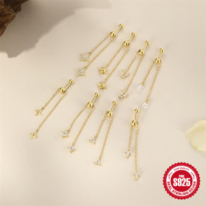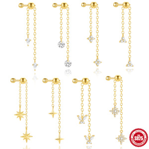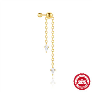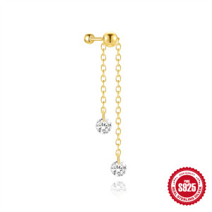 新款S925纯银流苏链条可调节镶钻圆珠螺纹穿刺耳骨钉欧美热销耳饰