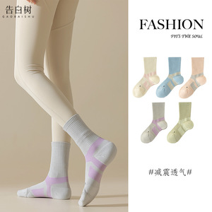 专业运动袜子女秋冬季毛巾底吸汗透气中筒袜健身瑜伽跑步运动棉袜