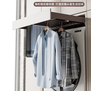 洗衣机隐形晾衣架裤架阳台上方隐藏式抽拉衣架可伸缩滑轨衣柜内置