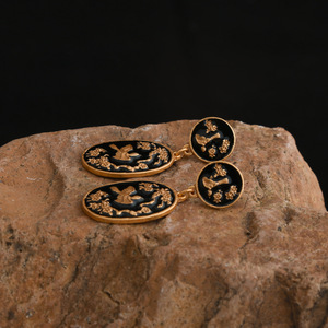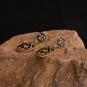 复古铜质黑色珐琅耳钉银耳针小众轻奢高级感女士耳骨钉流苏耳饰