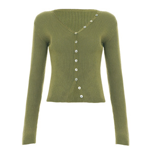 复古绿气质温柔风针织单排扣上衣秋季氛围感新款修身长袖女装开衫