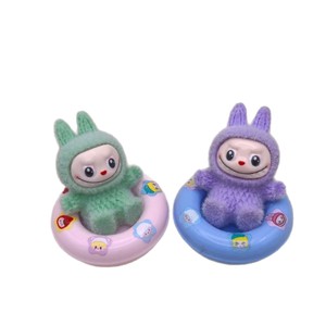 新款游泳圈植绒拉布布 diy树脂饰品手办盲盒桌面车载小摆件对对碰