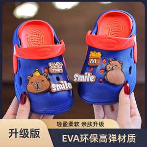 儿童拖鞋男童女童洞洞鞋卡皮巴拉新款男孩踩屎感家居宝宝室内防滑