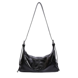 新款复古油蜡皮斜挎包新月包大容量百搭单肩包宽肩带高级质感女包