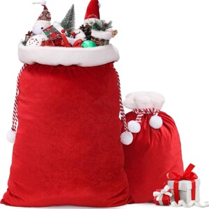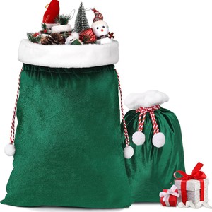 圣诞天鹅绒圣诞老人袋金丝绒礼品袋圣诞老人礼物背袋礼品包抽绳