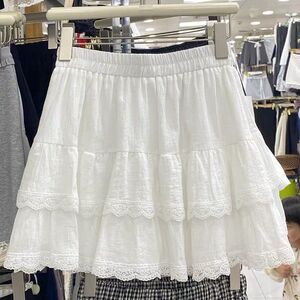 白色蕾丝裙子蛋糕短裙防走光新款显瘦夏季高腰蓬蓬芭蕾半身裙纯色