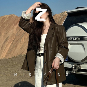 2025宽松复古高级皮衣外套女夹克机车微胖大码长袖上衣胖mm皮西装