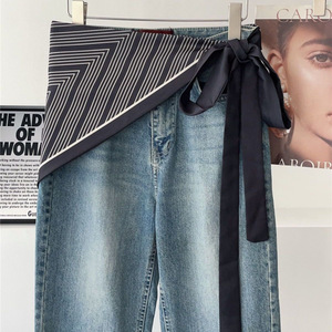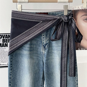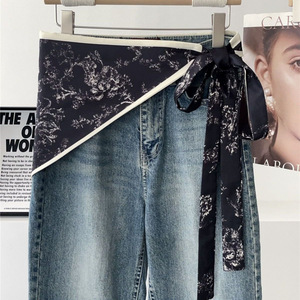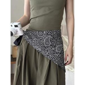 2025新款复古时尚黑色腰果花系带大三角巾女叠穿屁帘配牛仔裤腰封