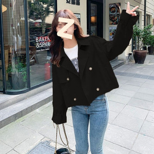 2025外穿新款显瘦外套宽松春秋短款百搭韩版风衣女小个子黑色