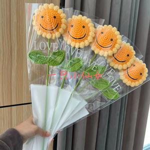 创意编织手工针织向日葵玫瑰毛线花束仿真花成品教师节礼物送生日