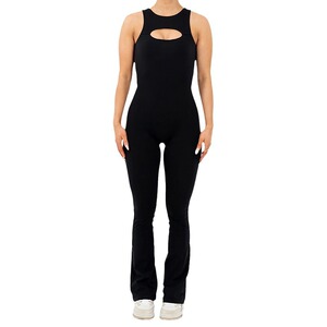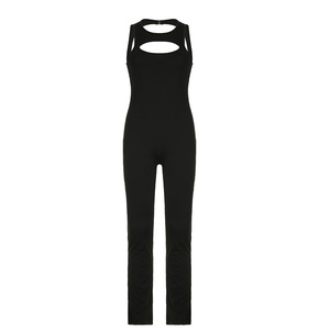 eBay欧美风休闲女装纯色个性胸部镂空露背塑身阔腿微喇叭连体裤夏