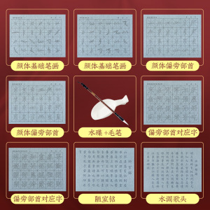 抖音套装学生练习基本笔画偏旁毛笔书法练习颜体书法水写布10件套
