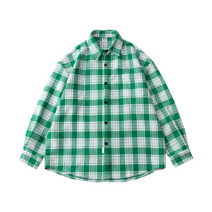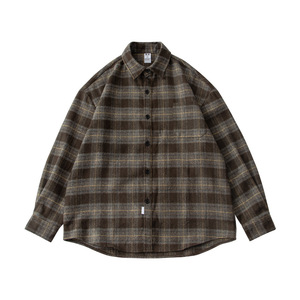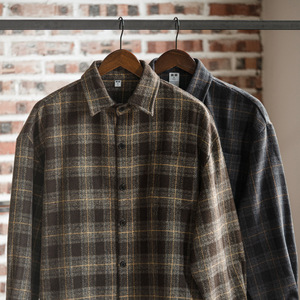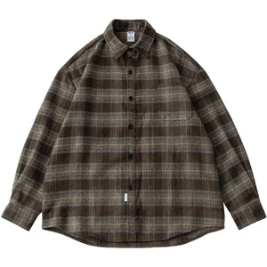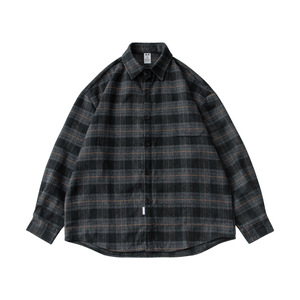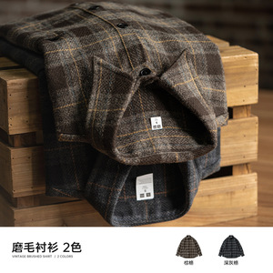日系工装磨毛宽松格子衬衫男女设计落肩保暖开衫外套潮牌复古大牌