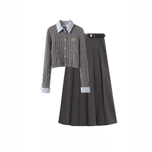 秋冬套装女2025新款设计感假两件针织毛衣配气质显瘦半身裙两件套