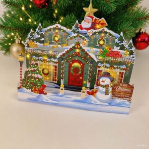 跨境圣诞贺卡3D音乐灯光闪烁立体贺卡节日礼品卡圣诞礼物卡片