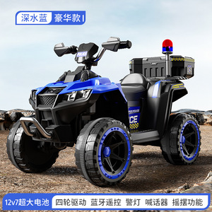 蓝色-12v7大电瓶+四驱+音乐灯光+遥控+警车喊话器
