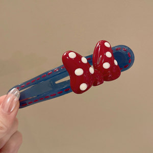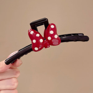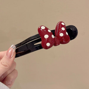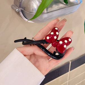 气质红色蝴蝶结鸭嘴夹女高级感2025新款一字发抓后脑勺抓夹盘发夹