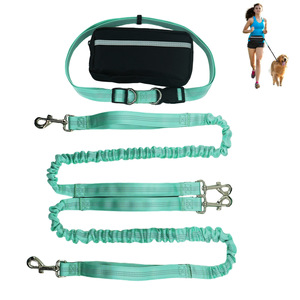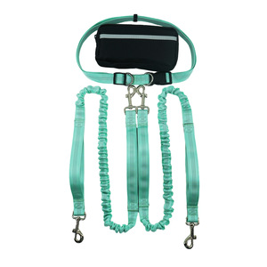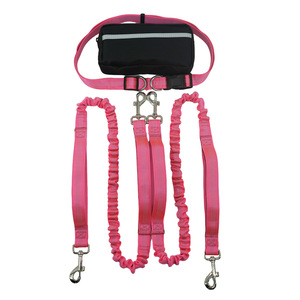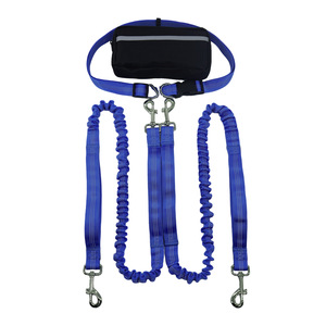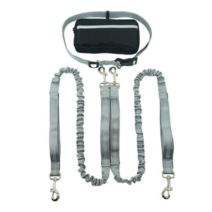 跨境新款多功能跑步腰包牵引绳 便携遛狗防爆冲一拖二宠物牵引绳