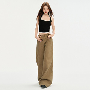 美式直筒牛仔裤女秋季新款辣妹设计感时尚宽松显瘦垂感阔腿拖地裤