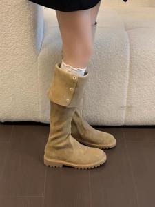 翻折两穿显腿长过膝长靴女2025秋冬新款绝绝子长筒堆堆靴西部靴子