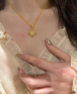 新款十字架金刚杵项链女新中式复古满钻重工轻奢高级感锁骨链气质