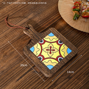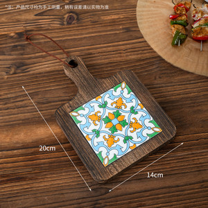 隔热垫陶瓷耐高温复古实木花砖把手垫中式高级感餐桌防烫砂锅垫