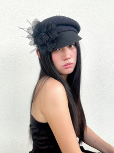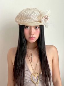 韩系氛围感花花春夏季透气薄款ins针织鸭舌帽度假百搭休闲画家帽