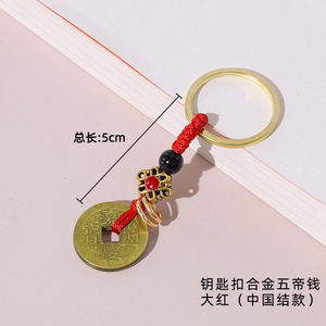 中国结铜五帝钱钥匙扣汽车手工挂件吊坠旅游黄铜配件配饰现货批发