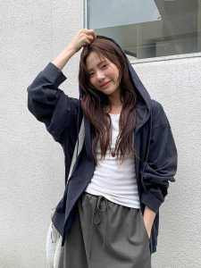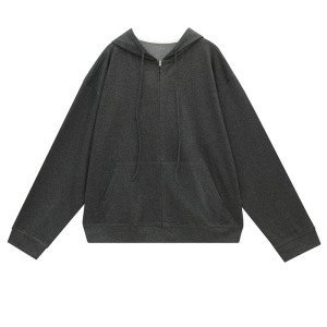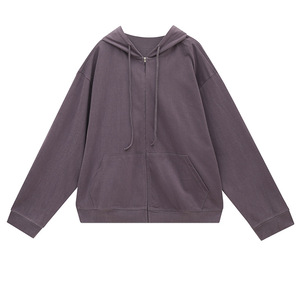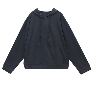 广州十三行2025秋韩系舒适休闲口袋设计连帽拉链开衫卫衣女02890