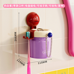 奶白紫套装(带漱口杯/吸盘磁吸/可挂牙刷/可挂钩/置物)