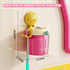奶白粉套装(带漱口杯/吸盘磁吸/可挂牙刷/可挂钩/置物)