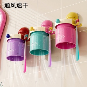 吸盘牙刷置物架漱口杯套装卫生间家用挂壁式免打孔磁吸洗漱杯杯架