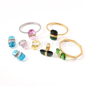 【新品】LUCENT彩色水晶多面切割八角型水滴形钻手镯戒指耳钉套装