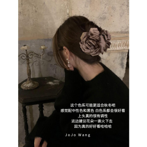 秋冬限定~卡其丝绸花朵抓夹女发夹鲨鱼夹高级感发饰头饰发抓