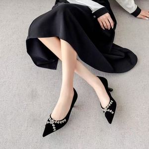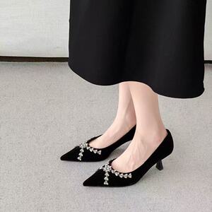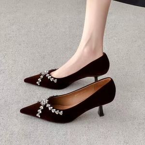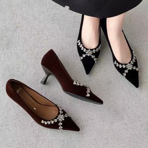 朱朱家2025秋季新气质水钻职业高跟鞋女一脚蹬尖头单鞋26A1659