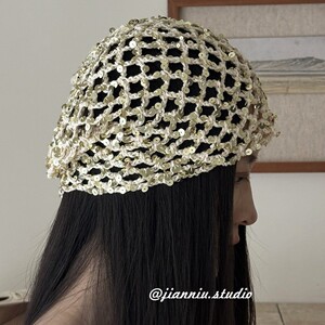 ins风亮片渔夫帽女205夏季新款时尚编织镂空包头帽显脸小堆堆冷帽