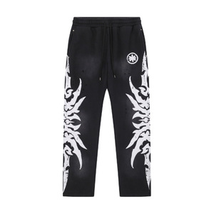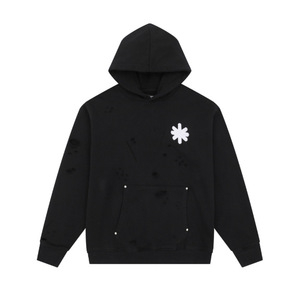 2025新欧潮牌复古印花做旧高街嘻哈宽松破洞连帽衫卫衣男女同款