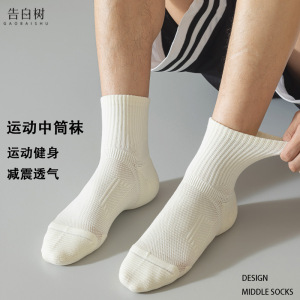 运动中筒袜子男春秋新款网眼透气专业健身跑步毛巾底短袜诸暨袜子