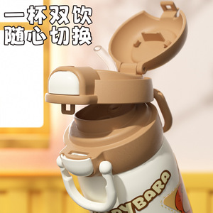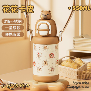 卡皮巴拉保温杯大容量儿童吸管杯小学生上学专用保温杯外出携带