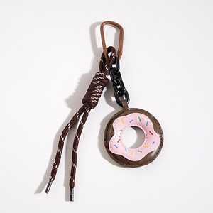 小红书热销甜甜圈尼龙编绳钥匙扣情侣款可爱卡通PU皮包包车载挂件
