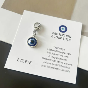 跨境热销PROTECTION GOOD LUCK好运卡蓝色邪恶之眼钥匙扣包包挂件